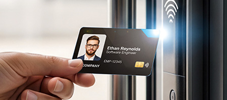 Beveiligde RFID-kaarten zijn contactloze kaarten. Een toegangskaart bevat een RFID-chip. De chip bevat een unieke identificatiecode en slaat alle benodigde informatie op. Net als RFID-tags gebruiken RFID-kaarten radiogolven om de gegevens naar de RFID-lezer te sturen. RFID-kaarten worden gebruikt voor toegangscontrole en beveiliging vanwege hun unieke identificatie. Het RFID-systeem werkt door een RFID-lezer naast een deur te plaatsen, die de unieke ID detecteert die door de persoonlijke badge wordt verzonden. De deur wordt alleen ontgrendeld als er een overeenkomst is tussen de RFID-toegangskaart en de autorisatie in het toegangscontrolesysteem. Brady kan u alles uitleggen wat u moet weten over RFID-kaarten.